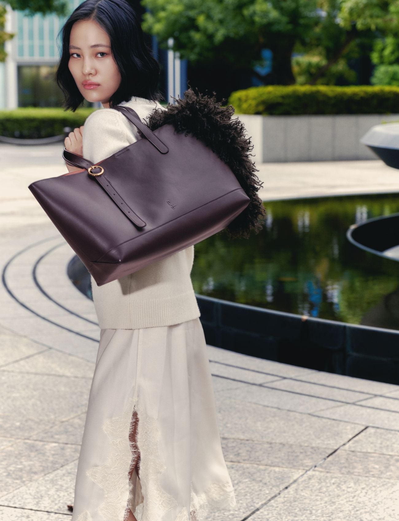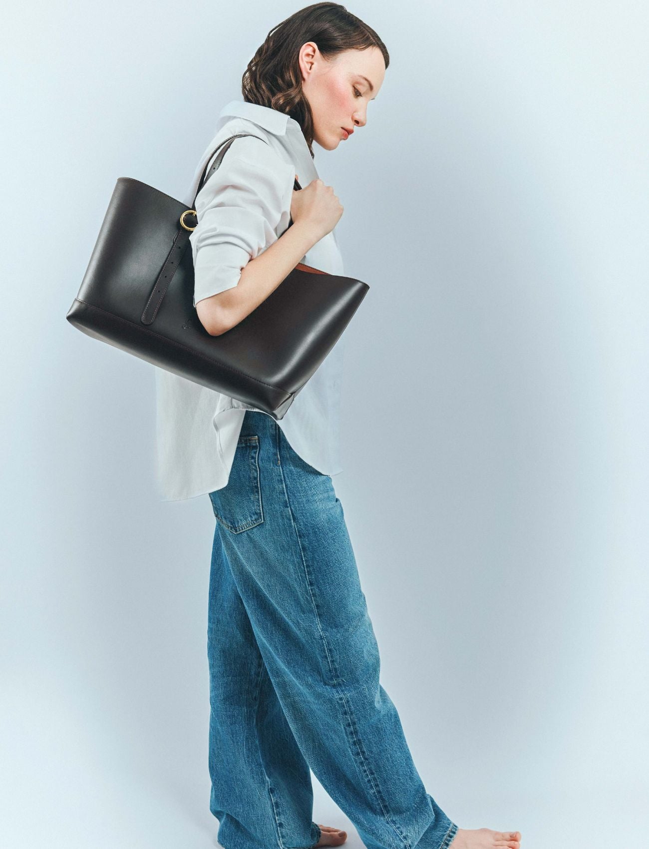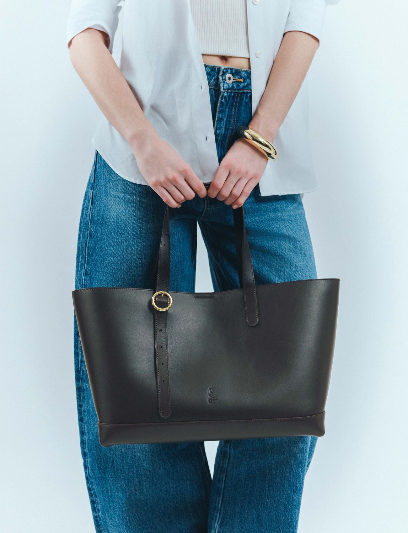 L’indispensable cabas en cuir lisse chestnut, ultra léger et élégant. Ses anses réglables s’adaptent à tous vos looks, du manteau d’hiver à la veste d’été, et son coloris unique avec doublure contrastée en fait une pièce d’exception.