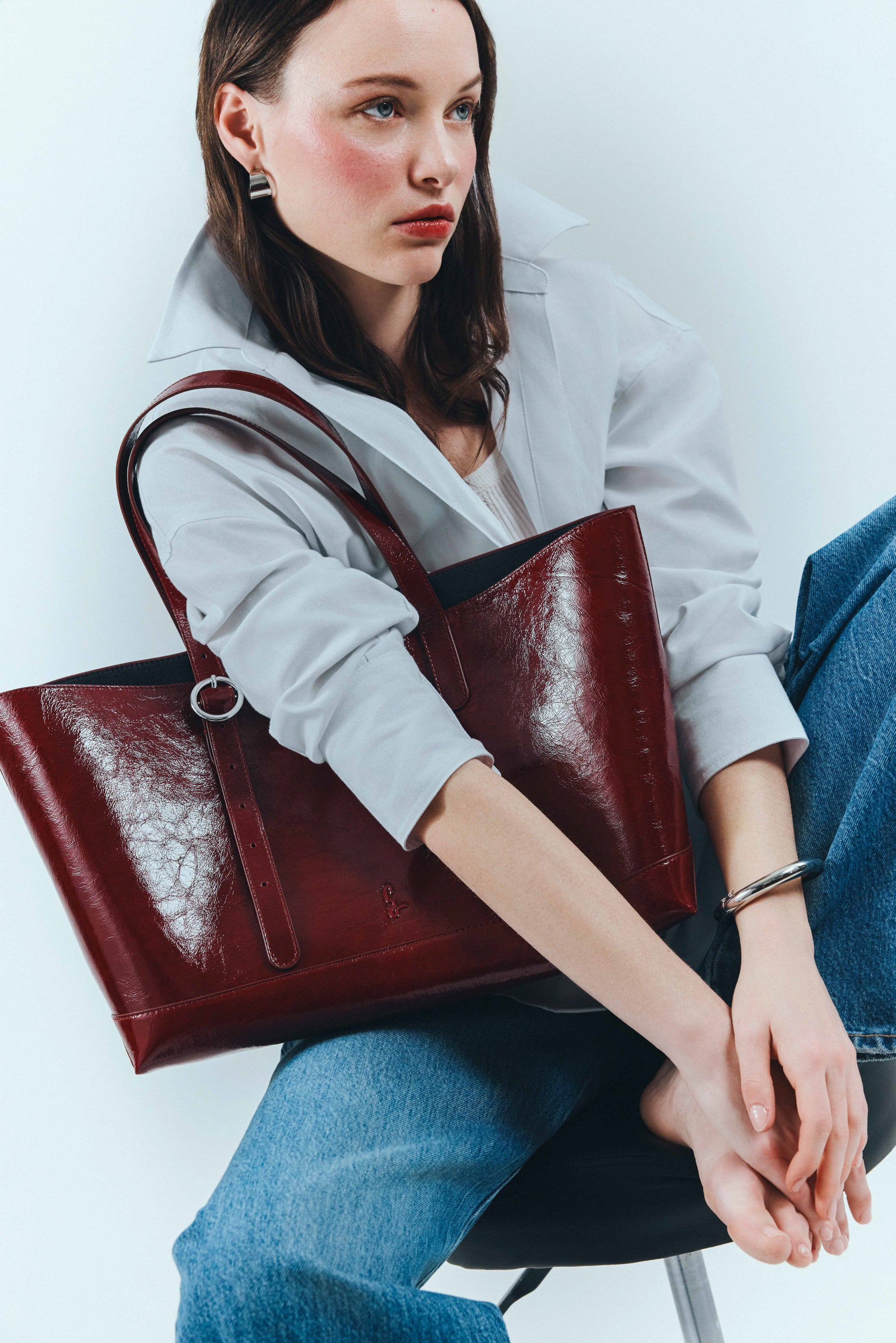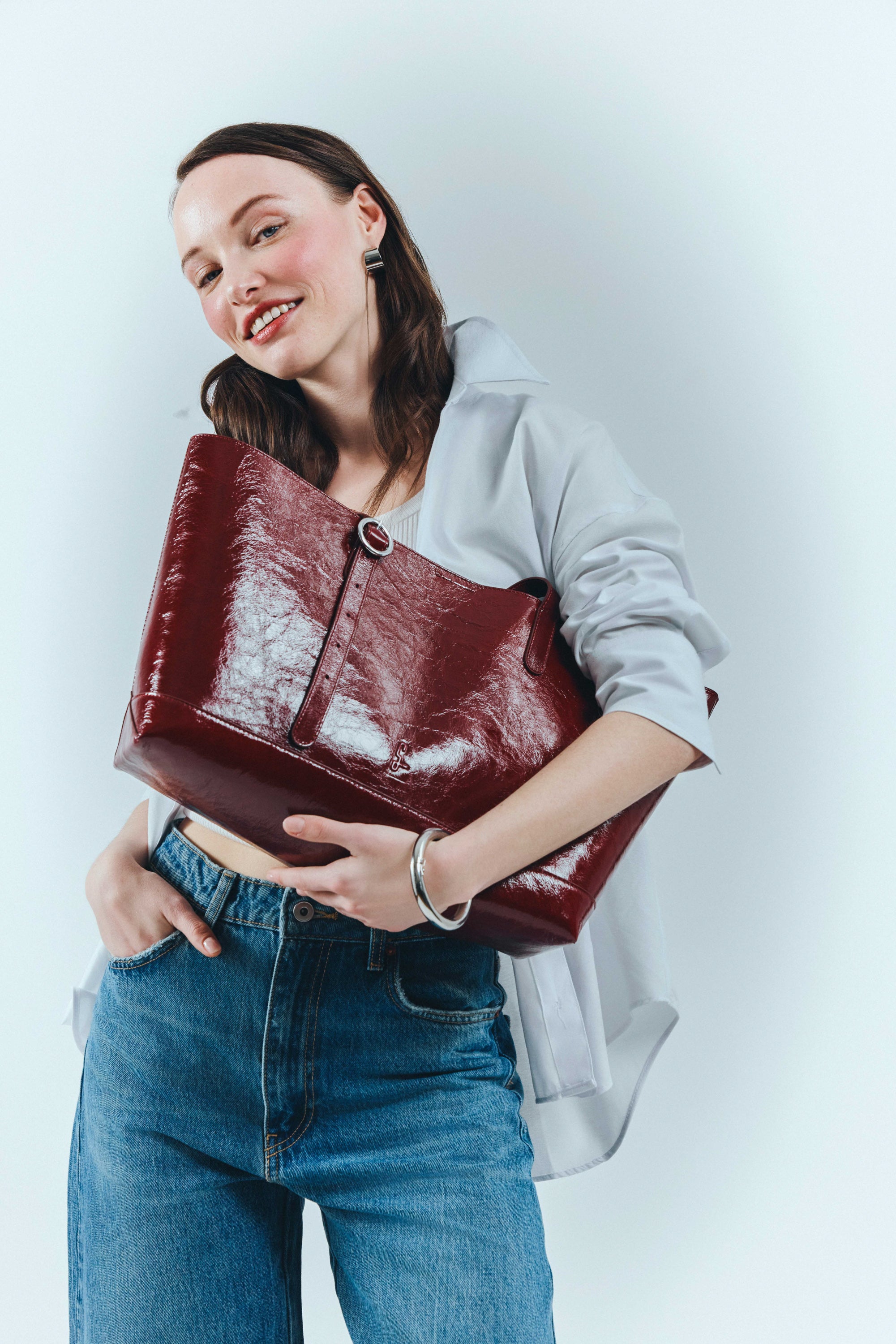 L’indispensable cabas en cuir verni burgundy, ultra léger et élégant. Ses anses réglables s’adaptent à tous vos looks, du manteau d’hiver à la veste d’été, et son coloris unique avec doublure contrastée en fait une pièce d’exception.
