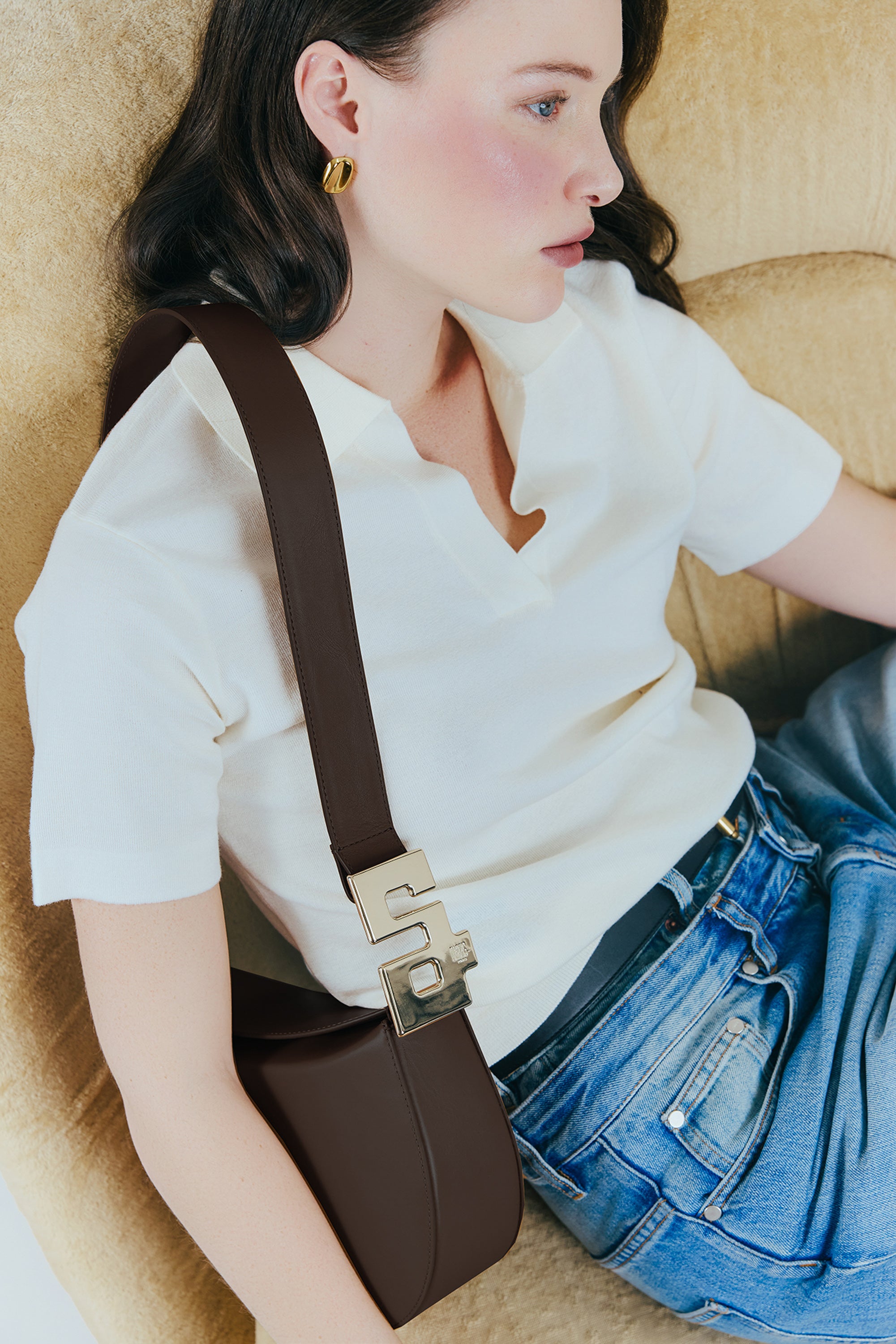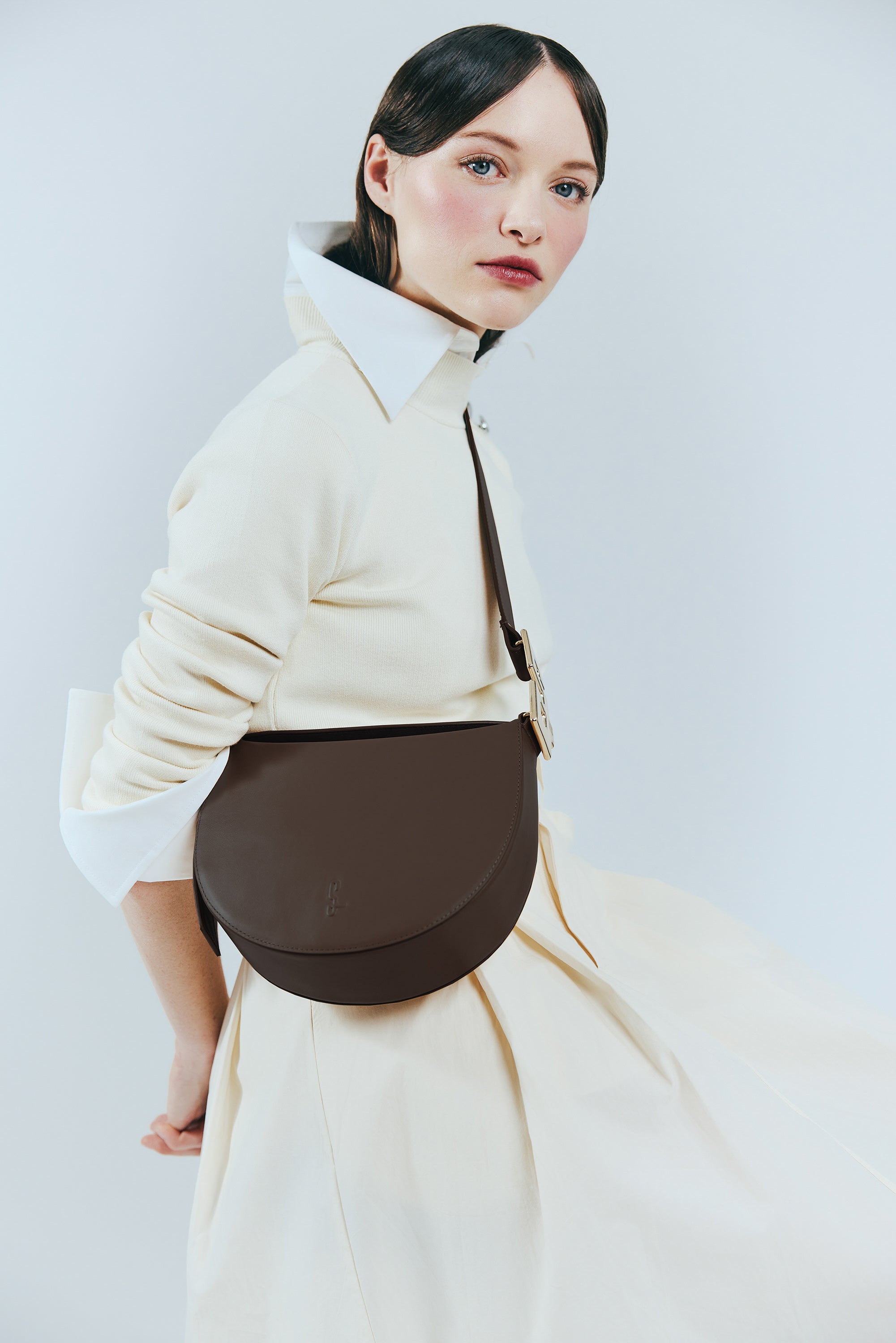 Élégant et pratique, ce sac en cuir lisse chestnut et sa boucle dorée vous accompagnent partout grâce à son anse réglable. Chaque détail est cousu à la main pour une qualité et une finition irréprochables.