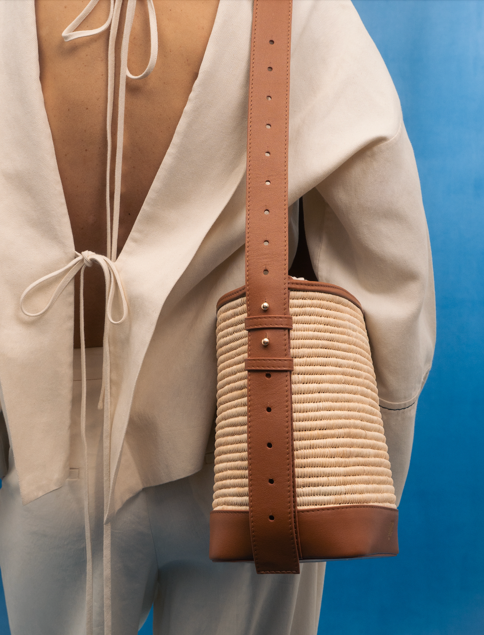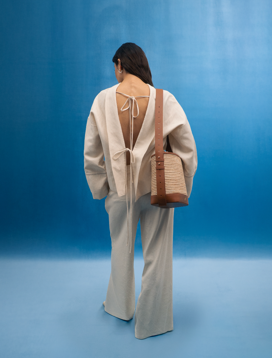 Édition limitée, 20 pièces uniquement. Le Day Dream se réinvente pour l’été dans une version alliant raphia naturel et cuir camel italien en collaboration avec le célèbre atelier DOUM. Cette association de matières nobles lui confère une allure à la fois authentique et contemporaine.
